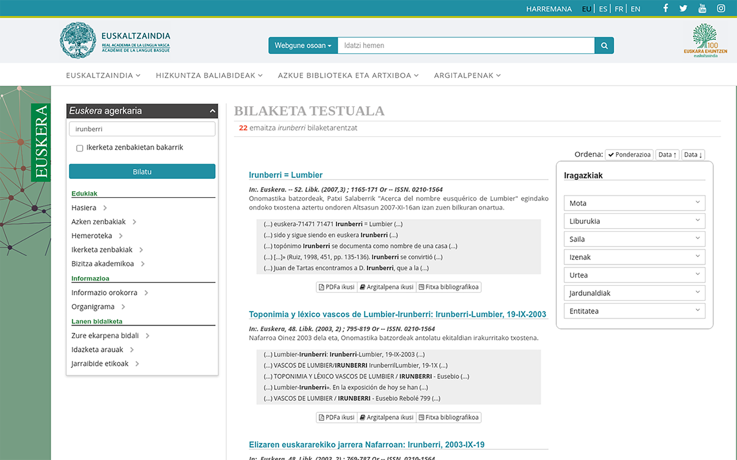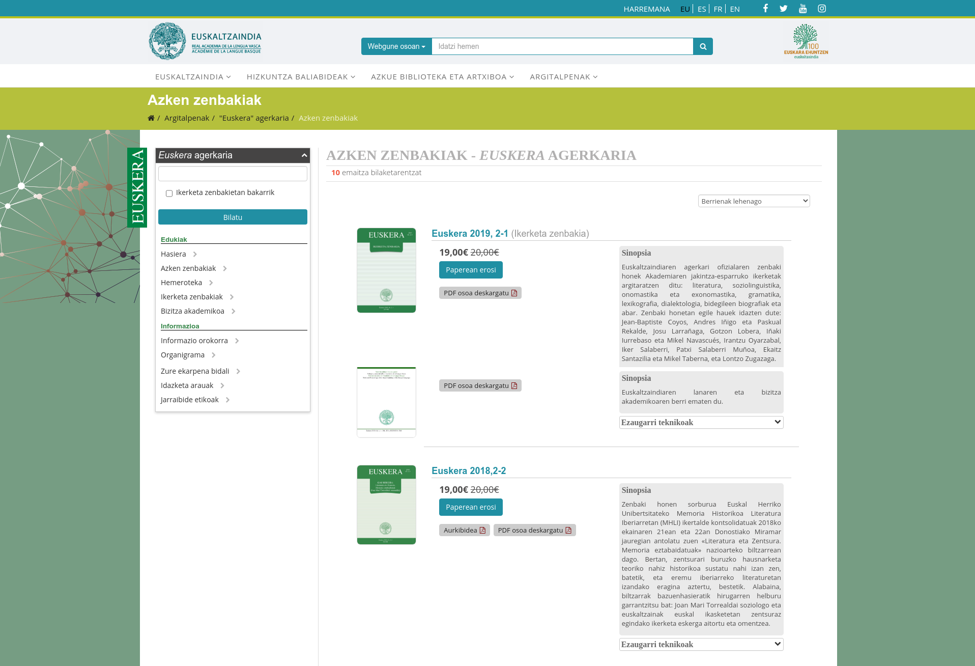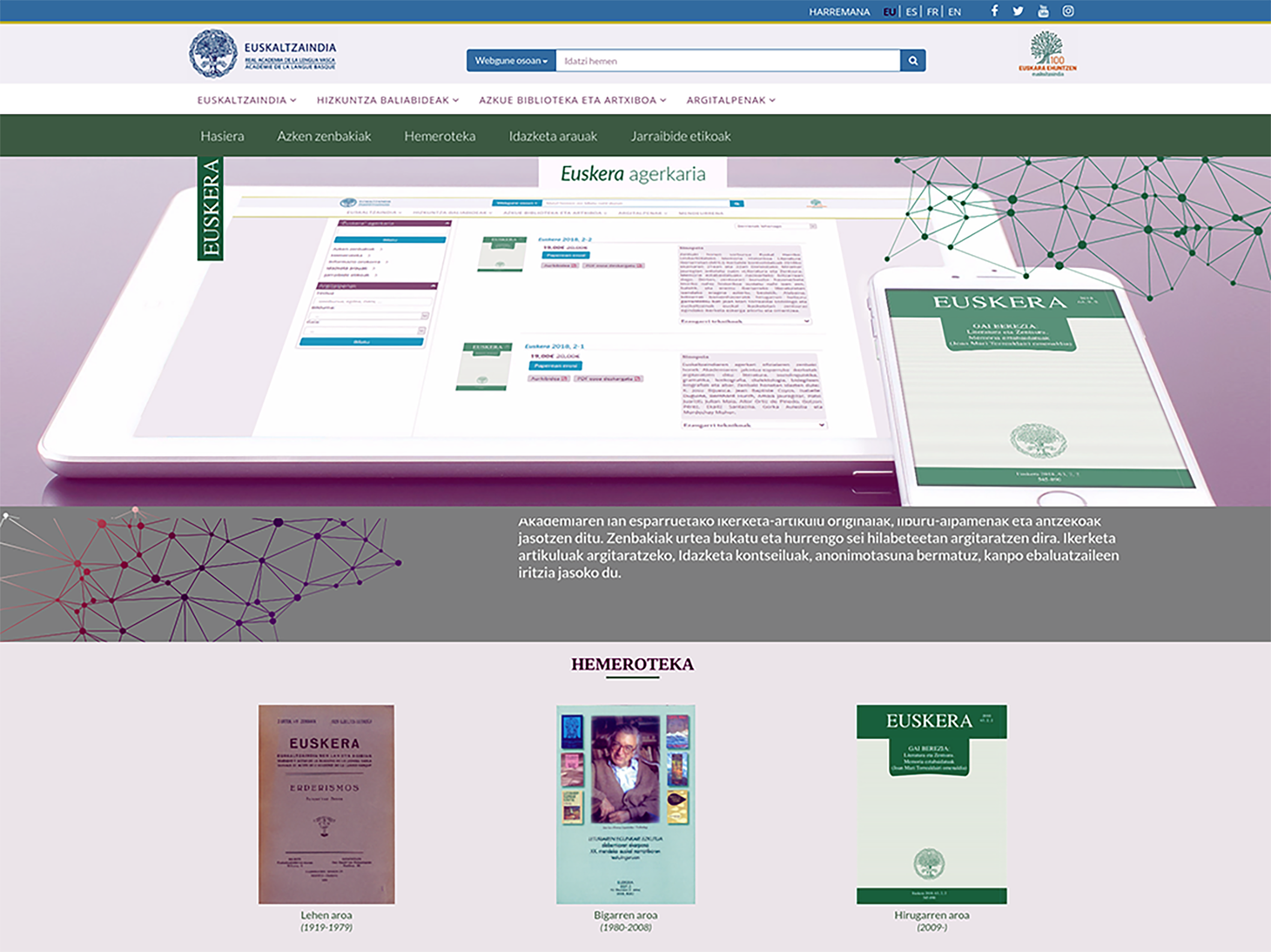 Euskaltzaindiaren Euskera agerkari akademiko-zientifikoak ehun urte bete ditu aurten, eta eraberrituta agertzen da orain Akademiaren webgunean (https://www.euskaltzaindia.eus/euskera).