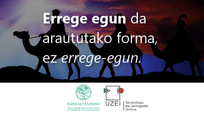 Euskaltzaindiak Errege egun arautu du ‘urtarrilaren 6a, Erregeek Jesus haurrari egin zioten gurtza gogoratzen duen eguna’ izendatzeko, ez errege-egun. Egun horretan ospatzen den bestaburuak baditu beste izen hauek ere, hiztegi arauemailean jasota daudenak: epifania eta trufania (azken horrek Ipar. marka du hiztegian).
