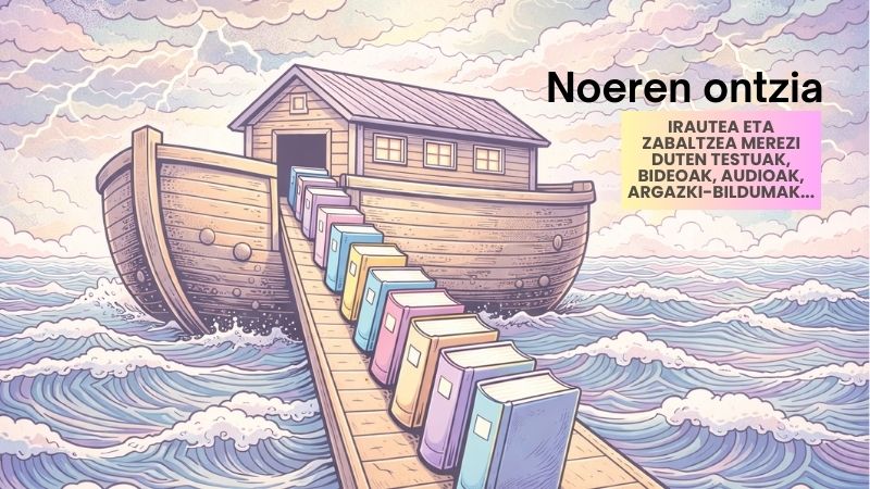Irautea eta zabaltzea merezi duten testuak jasotzen dira Noeren ontzian. Atzokoak eta gaurkoak, egungo ortografiara eta morfologiara ekarrita, baina lexikoa eta sintaxia ukitu gabe. Testuekin batera, bideoak, audioak eta argazki-bildumak ere aurkituko dituzu.
