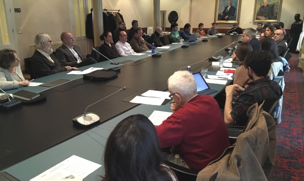 Akademiaren Bilboko egoitzan egin da mintegia, eta bertan elkartu dira kazetari, irakasle, politikari eta euskaltzain ugari, euskal hedabideen etorkizunari buruz hausnartu eta eztabaidatzeko.