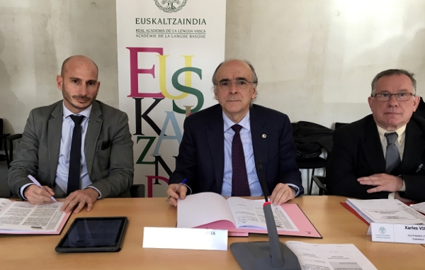 Andres Urrutia, euskaltzainburua: “Hitzarmen hau bestelako pausoa da Euskaltzaindia goi mailako erakunde moduan aitortzeko. Jada egina da hori Euskal Autonomia Erkidegoan nahiz Nafarroan, eta oraintxe dator Iparraldearen orena”.
