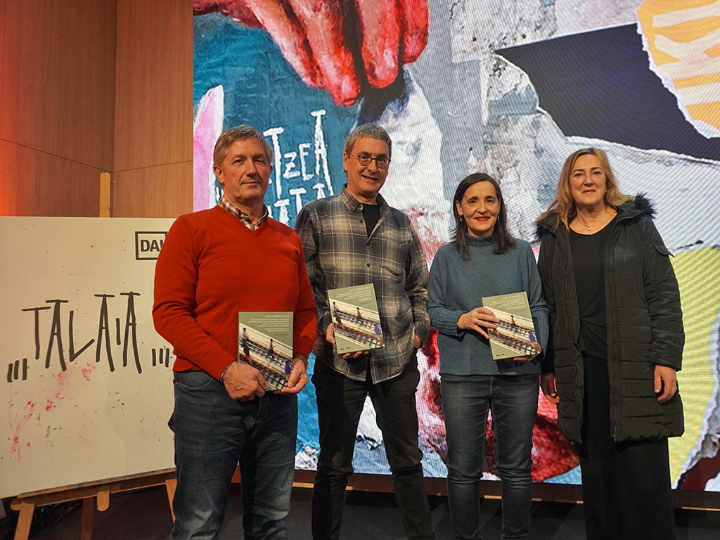- Josune Irabien, directrice de la promotion de la langue basque du gouvernement basque, et Patxi Juaristi, membre de la commission de Promotion d’Euskaltzaindia, ont assisté à la présentation d’Iñaki Iurrebaso. Joseba K. Pérez de Heredia, directeur du département de langue basque de la Députation forale d’Alava et Roberto González de Viñaspre, directeur de la commission d’Onomastique d’Euskaltzaindia, ont assisté à la présentation de Luis Mari Zaldua.