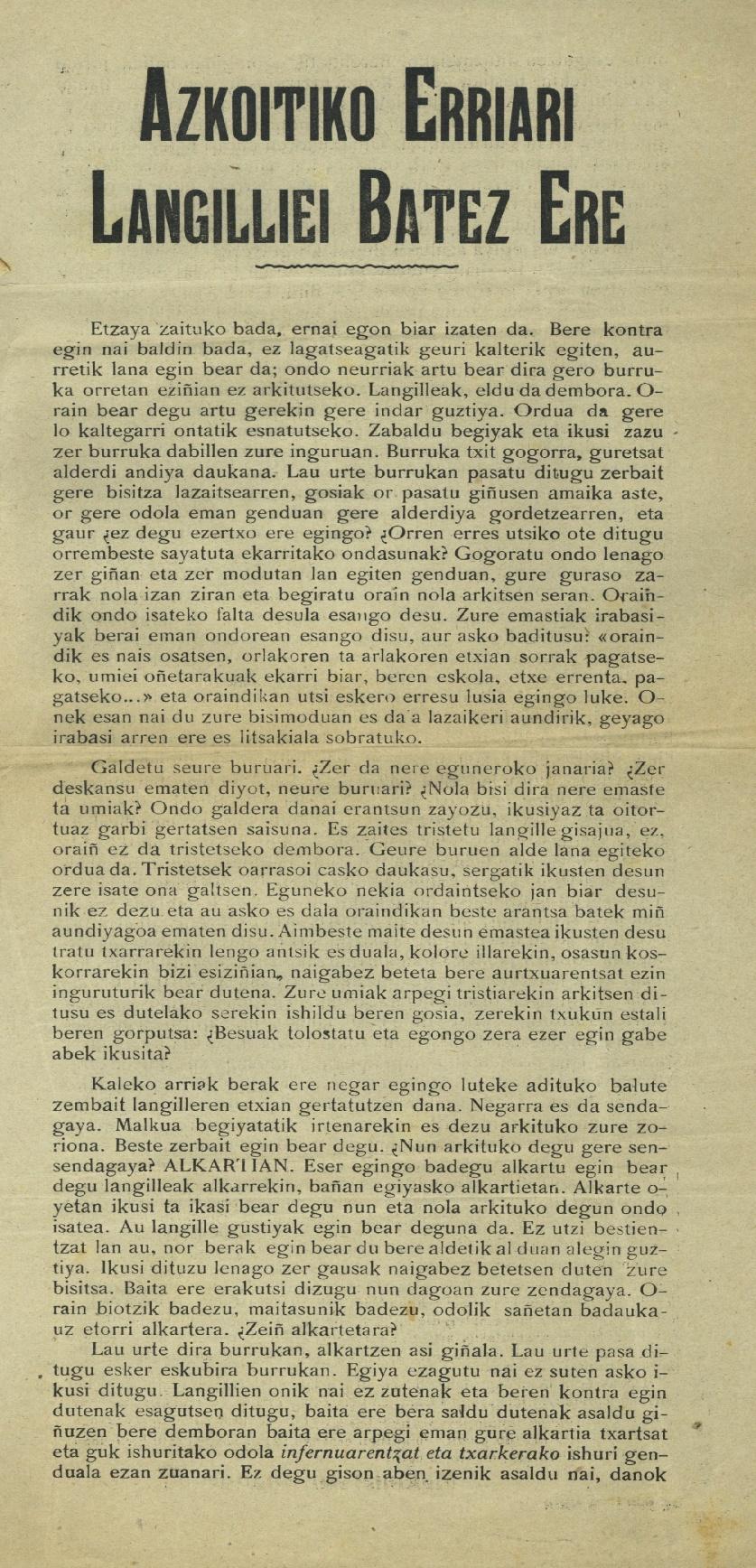 AZKOITlKO HERRIARI, LANGILEEI BATEZ ERE