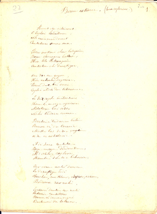 Incipit: Hunat ere aitzinerat / O coplari escualduna