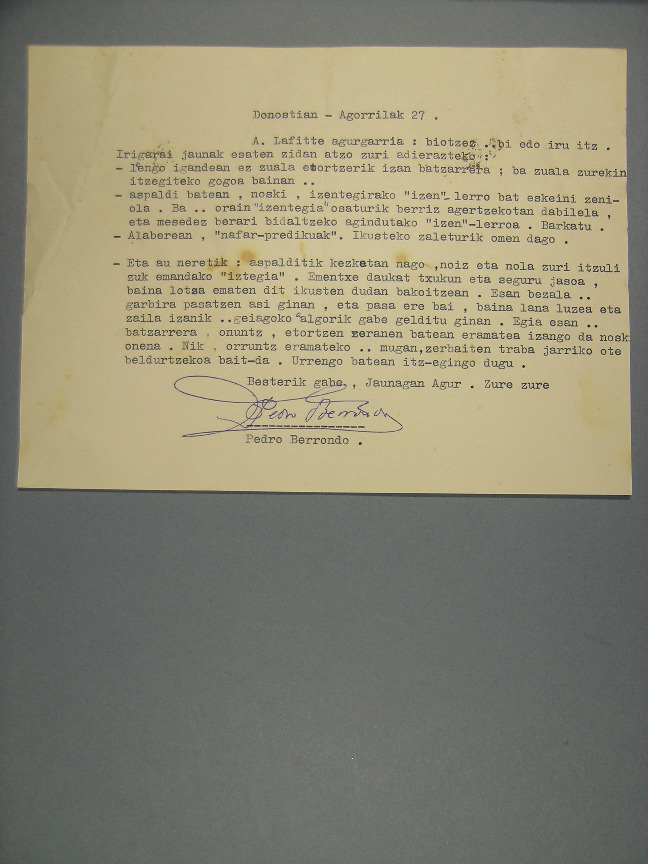 101-108 - BERRONDO, Pedro (1919-2002), 1950?-1960?, 3 gutun Piarres Lafitteri euskaraz