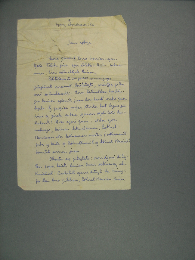 101-116 - BIZKAIXIPI, [Xipri Arbelbideren izenordea], 1950?, gutun 1 euskaraz, 3 artikulu: “Beltzak eta euskaldunak”, “Kabalen saltzeaz”, “Marseillaisaren gainetik [Ik. g.: 101-45 eta 101-792]