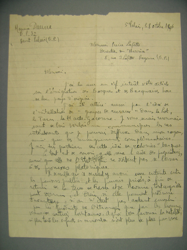 102-189 - DAUNA, Maurice, (Donapaleu), 1946, gutun 1 Piarres Lafitteri