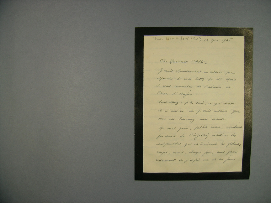 102-218 - DUFOUR, Mme. Léon, 1945, gutun 1