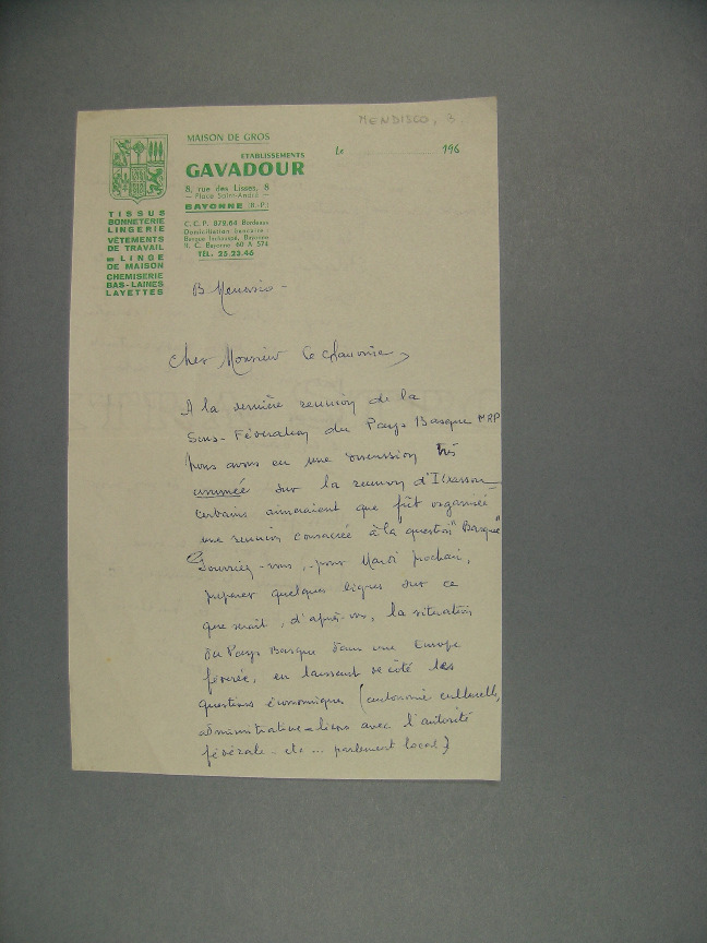 104-572 - MENDISCO, Bernard, (Baiona), 1950?-1960, 2 gutun