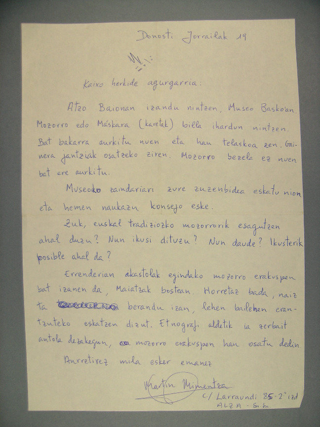 104-578 - MIMENTZA, Martin, (Donostia), 1970?, gutun 1 euskaraz