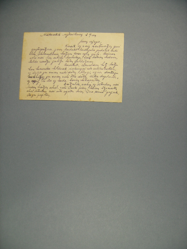 105-649 - POCHELU, Etienne, (Makea), 1930?, gutun 1 euskaraz POCHELU, Léon (1912-1987), 1959-1961, gutun 1, postala Piarres Lafitteri euskaraz