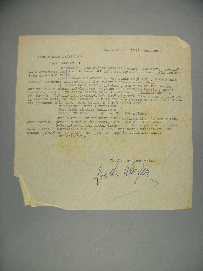 105-736 - TXILLARDEGI (1929-), 1957-1978, 8 gutun Piarres Lafitteri euskaraz