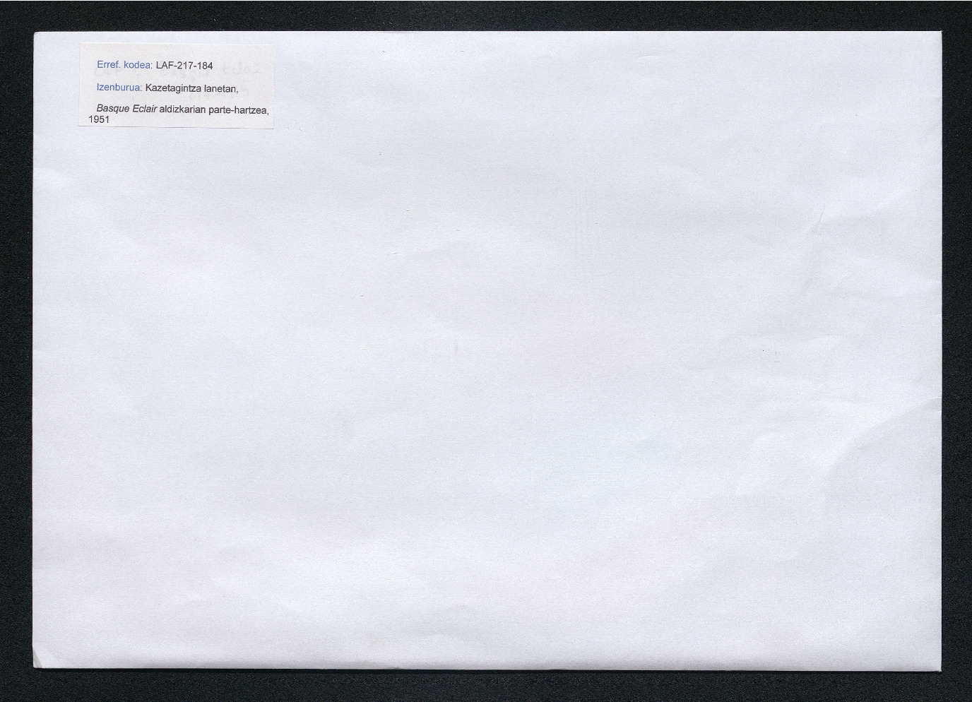 217-184 - Kazetagintza lanetan, Basque Eclair aldizkarian parte-hartzea, 1951, eskuizkribuak, frantsesez.