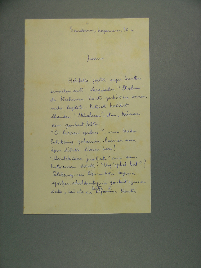 101-045 - ARBELBIDE, Xipri (1934-), 1960?, 2 gutun euskaraz, [Ik. g.: 101-116 eta 107-792]