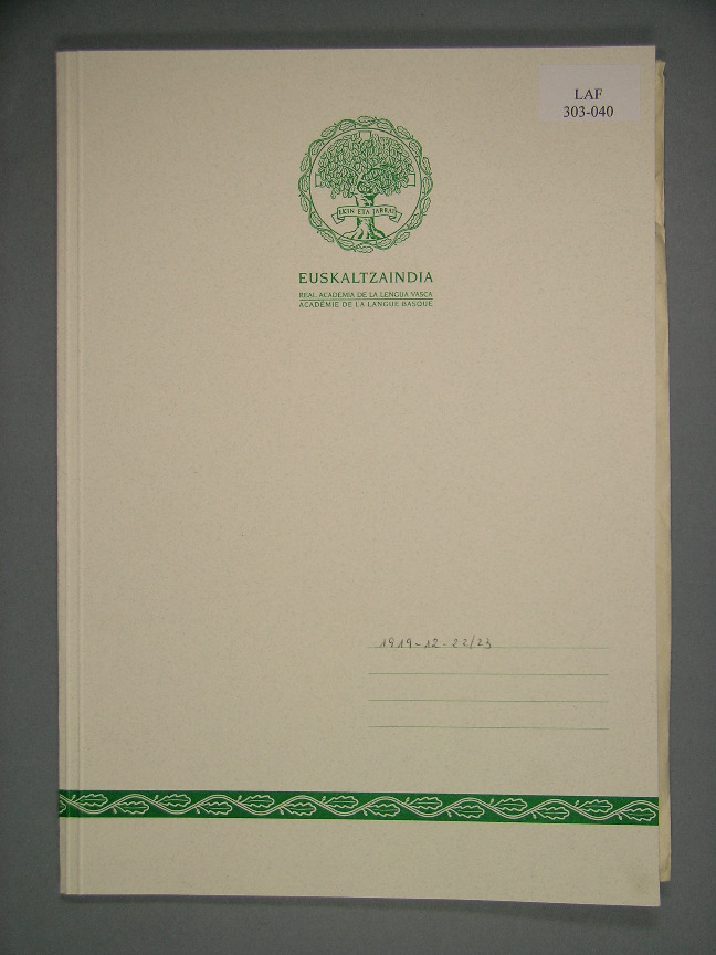 303-040 - Euskaltzaindiaren batzar-deiak, agiriak, txostenak eta gutunak, Martin Landerretxeri euskaltzain gisa bidaliak, 1919-1925, euskaraz, mekanografiatuak, eskuizkribuak.