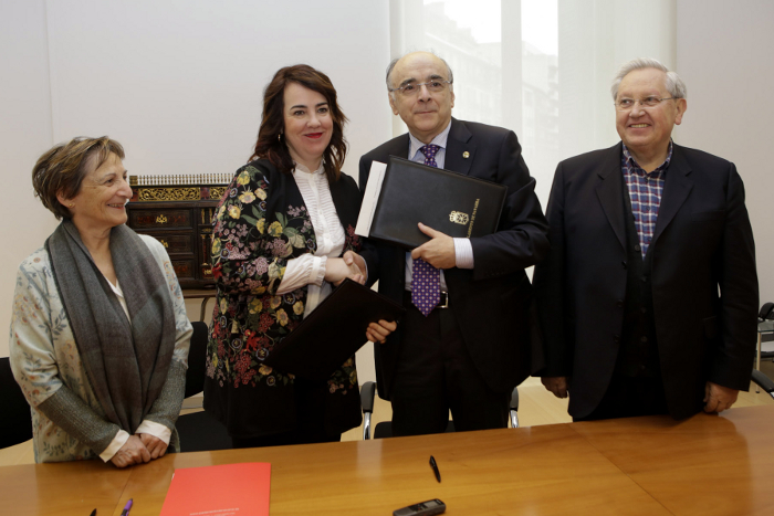 Ainhoa Aznarez Igarza Nafarroako Parlamentuko lehendakariak eta Andres Urrutia euskaltzainburuak lankidetza hitzarmena sinatu dute, gaur, euskararen babes eta indartzea helburu. Hitzarmen honen xedeak atal desberdinak ditu. Alde batetik, antzinako euskarazko testu juridikoen erakusketa bat egiteko helburua du; baita izaera lexikografikoko euskarazko Hiztegi Juridiko-Parlamentarioa hobetzekoa ere. Bestalde, Euskaltzaindiaren mendeurrena dela eta, 2018ko eta 2019ko udazkenean antolatuko diren ekitaldi eta jardunaldiak elkarbanatzea aurreikusten da. Proiektu hauetan guztietan euskararen lurraldetako elkarte, unibertsitate eta erakundeek parte hartu ahal izango dute.