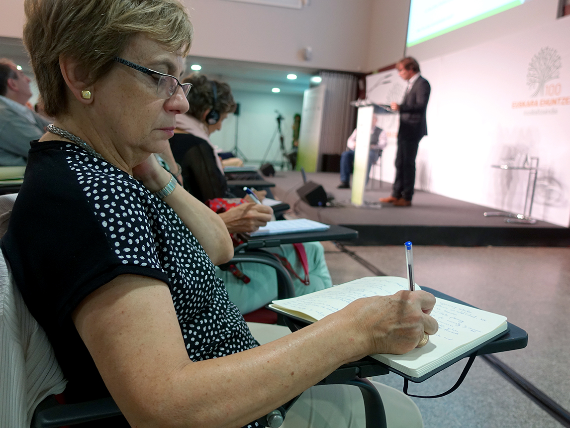 Protagonistak, beraz, Euskaltzaindiak eskura jarri dituen tresnak izan ziren urriaren 5eko saioan, eta eguneko mantraedo hitz-gako errepikatua, berriz, Bernardo Atxagak eman zion egunari, Arrautza, huevo, oeuf, egghitzaldian, “tailer” bat antolatu beharko genukeela esplikatu zuenean. Tailer bat, hain zuzen, “Eibarren-edo kokatua”, euskaraz produzitzen den guztiari eman beharreko zabalkundea nola egin antolatzeko.