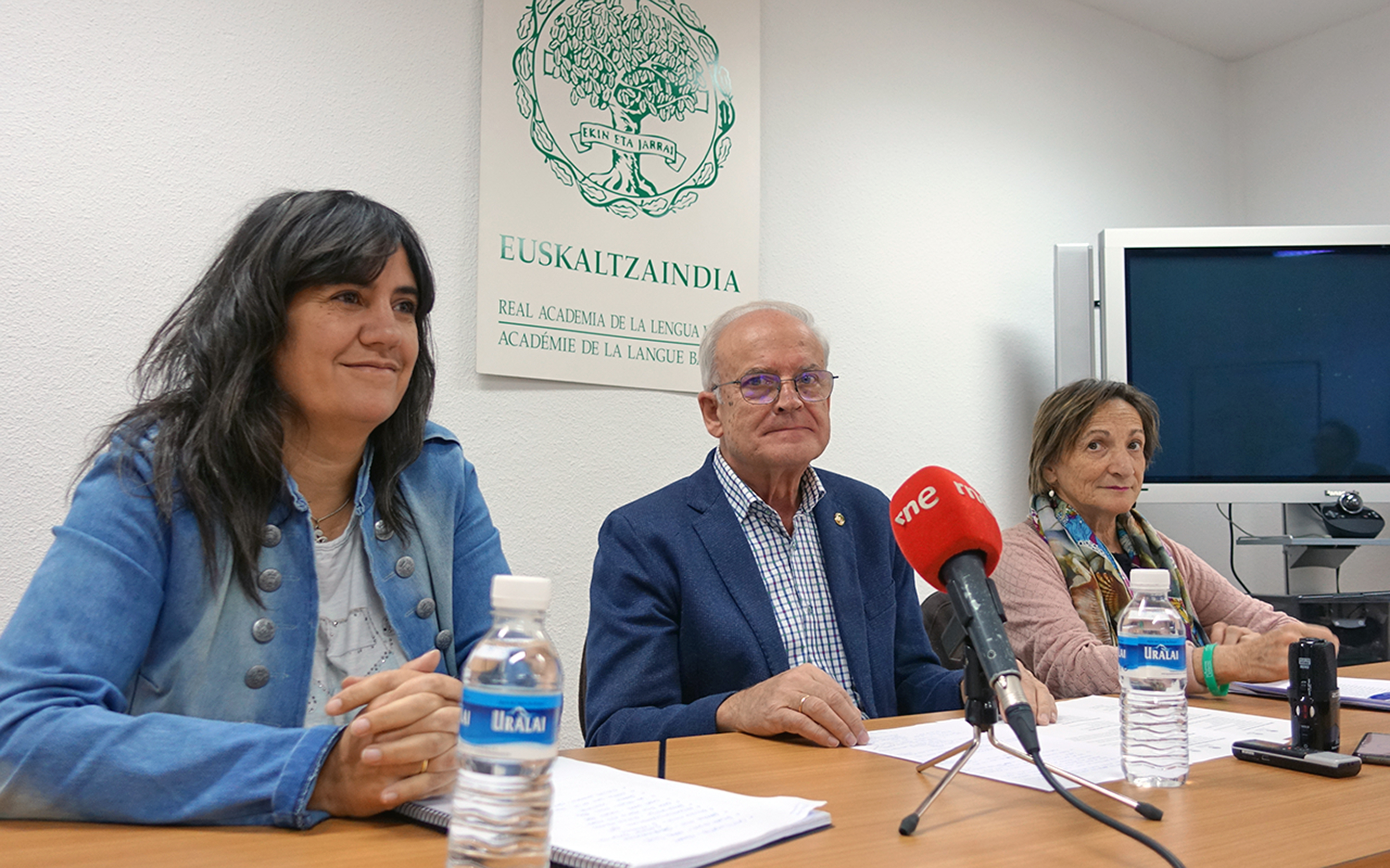 Larunbatean Burlatako Kultur Etxean izanen den emanaldia aurkeztu da gaur Euskaltzaindiaren Iruñeko ordezkaritzan. Bertan izan dira Andres Iñigo eta Sagrario Aleman euskaltzain nafarrak, Mari Paz Arizkun Paz de Ziganda helduen abesbatzaren zuzendariarekin batera. “Euskaltzaindiak euskal gizarte osoarekin batera ospatu nahi izan du bere mendeurrena, eta Mende berria kantuz horren adibide garbia da”, gogoratu du Andres Iñigo Euskaltzaindiaren Nafarroako ordezkariak. Bide batez, azken hilabeteotan mendeurrenaren karira eginikoak eta gertatutakoak errepasatu ditu, labur-labur: 10 jardunaldi akademiko, 8 argitalpen, bi erakusketa, 7 ekintza artistiko-kultural, sare sozialetan eta webguneko erabiltzaileen artean izandako gorakada nabarmena... “Euskaltzaindia euskal gizarteak bultzatu zuen duela ehun urte, eta azken urte honetan konturatu gara gizartearen hauspoa badugula, beraz, jarraituko dugu lanean, euskara sustatu eta aitzinatzen”.
