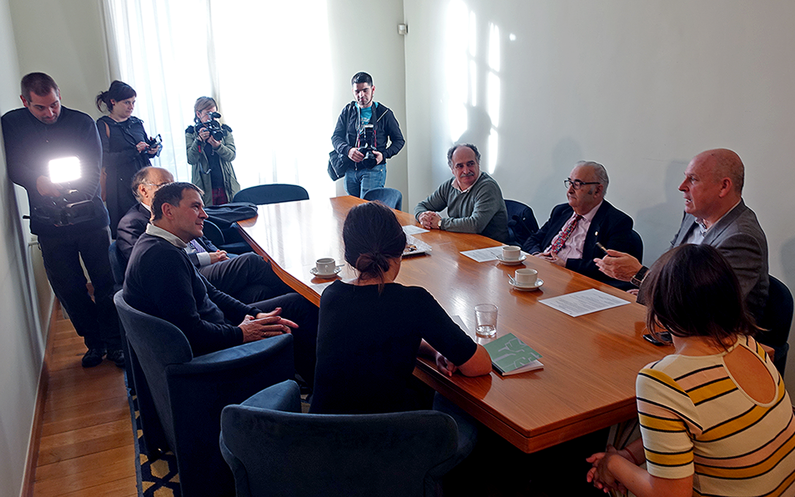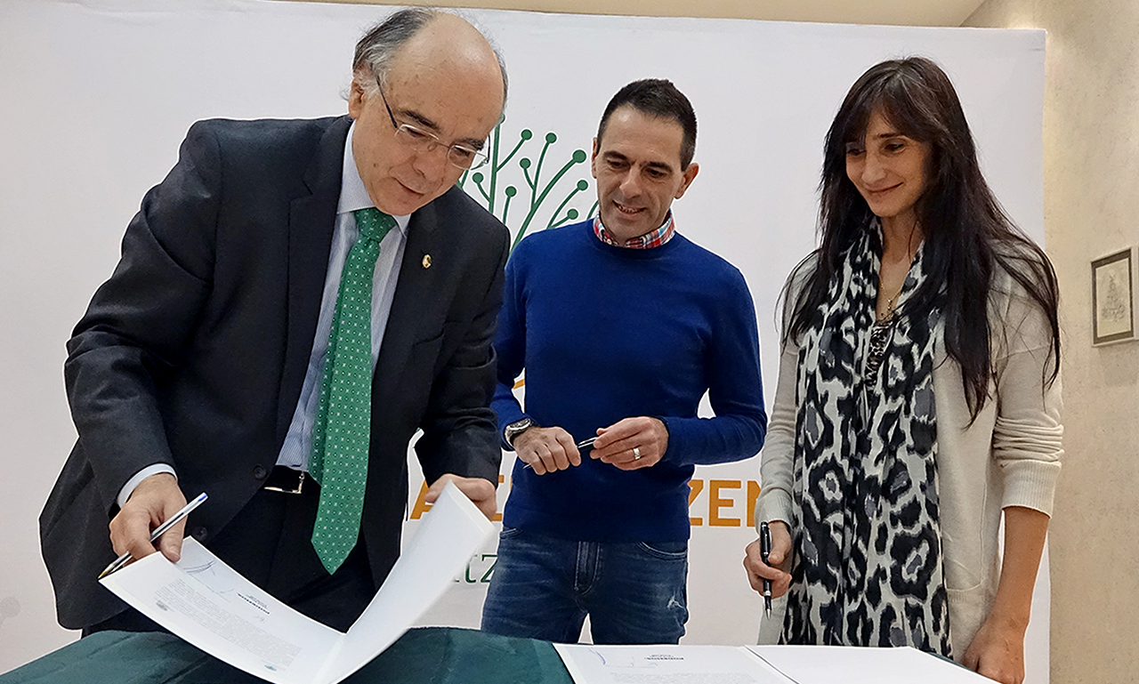 -Miren Echeveste Lacombe Ahal Dugu-Podemos Euskadi alderdiaren Irungo idazkariak eta Andeka Larrondo Komunikazio idazkariak izenpetu dute dokumentua, Euskaltzaindiaren Bilboko egoitzan.