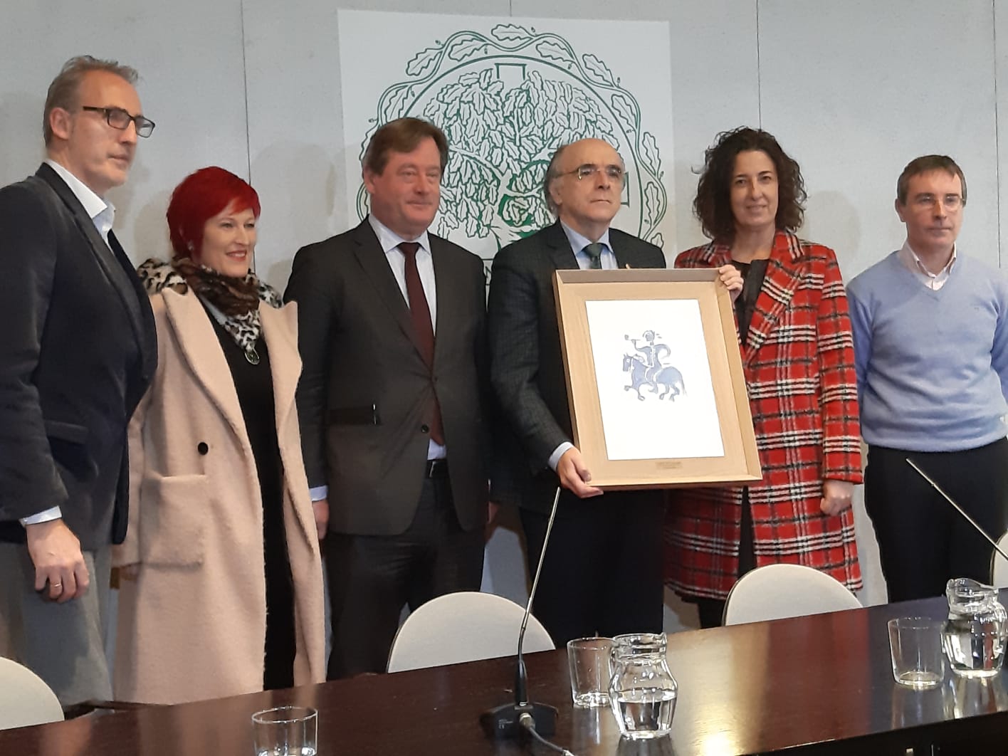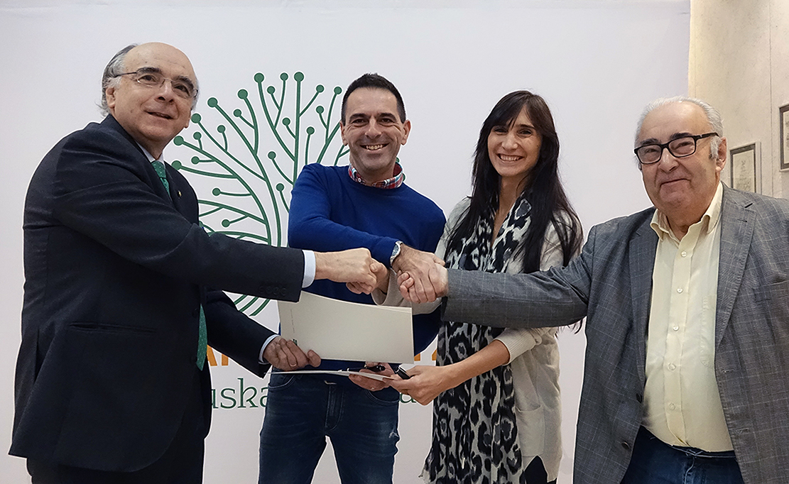 -Noticias Taldearen 2018 Ortzadar Saria jaso du, gaur, Euskaltzaindiak. Kike Hermosilla Iparragirre argitaletxeko merkataritza zuzendariak eman dio saria Andres Urrutia euskaltzainburuari, Akademiaren Bilboko egoitzan.