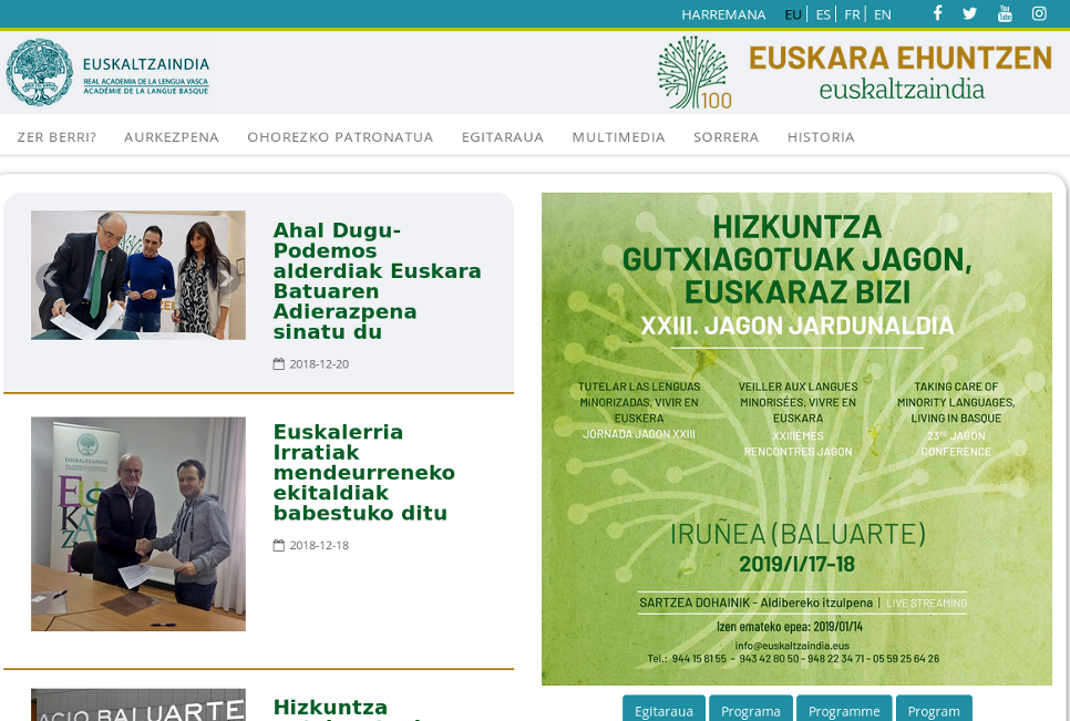 -Arantzazuko nazioarteko biltzarrean aurkeztu zen webgune berriztatuak 576.908 ikustaldi izan ditu azaroan, iazko azaroan baino 168.710 gehiago. Guztira, 146.032 bisita izan ditu Akademiaren atari digitalak, 2017ko azaroan baino 56.513 gehiago.